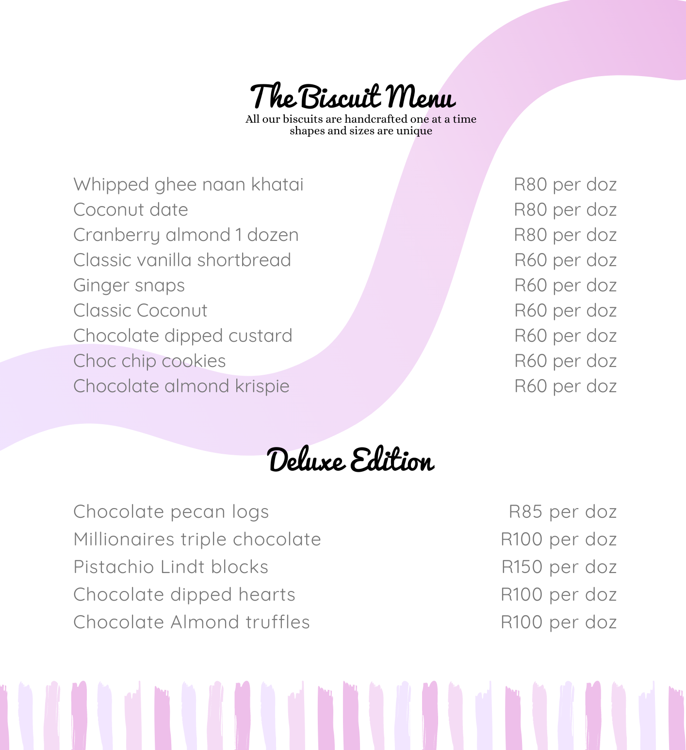 All our goodies are made with the finest & freshest ingredients, Including: Pure butter, ghee, coconut oil, quality creams, nuts, dates, 100% alcohol free vanilla, free range eggs, eureka flour, Cadbury/Lindt chocolates, seasonal fruit & fresh flowers
